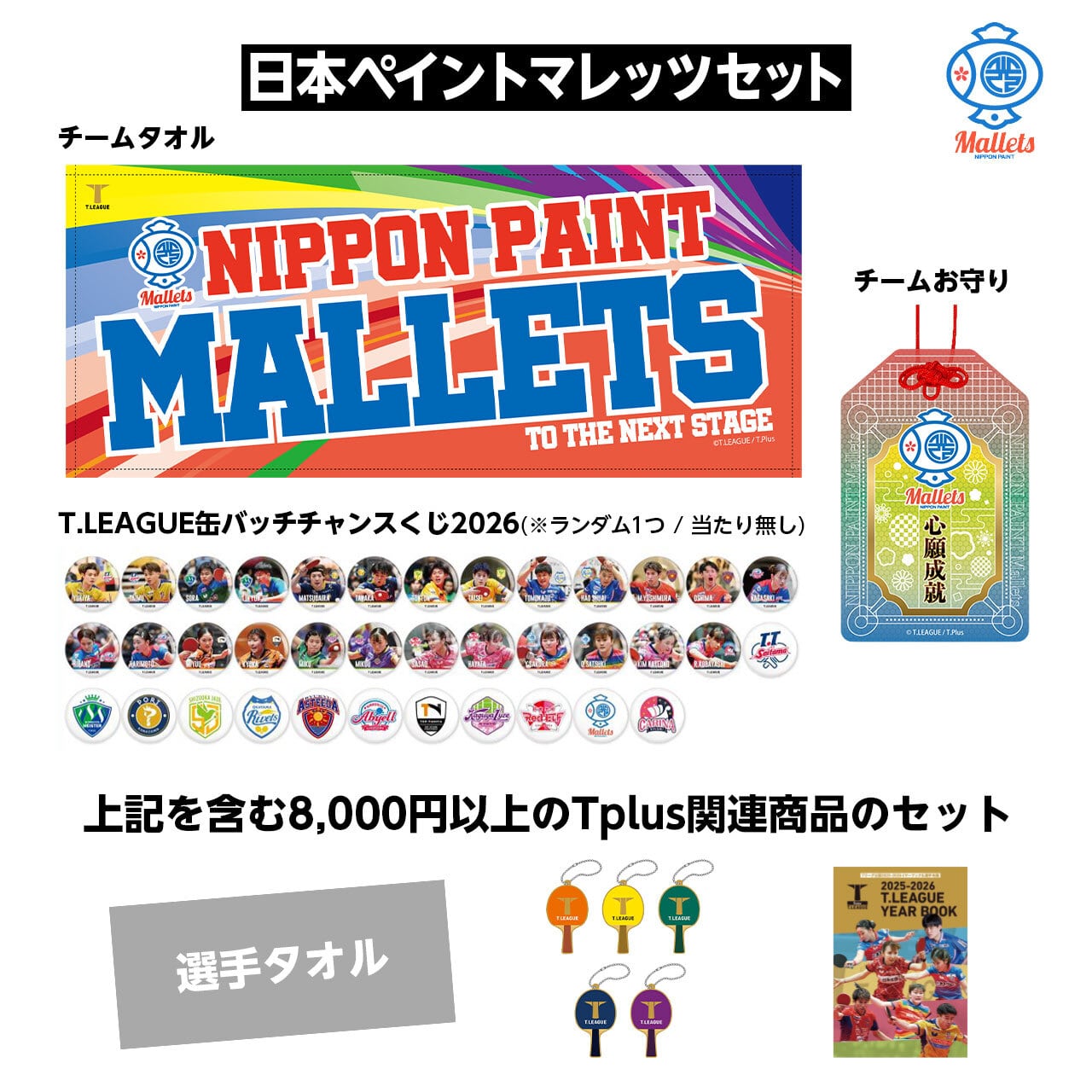 チーム応援フェイスタオルやお守り風アクリルチャーム、缶バッチなど、ファンには嬉しいアイテムを詰め込んだセットです。